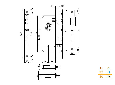 Замок врезной для межкомнатных дверей Kale-kilit 151 K, с подшипником (35 мм), цвет: сатен.