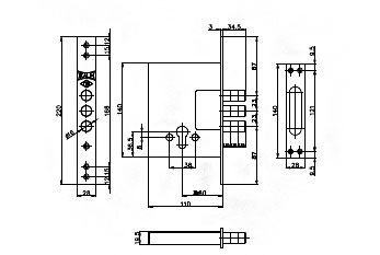 Врезной цилиндровый замок для металлических дверей Kale-kilit 257 (60 мм). С подшипником. Цвет: хром. Цвет цилиндра-золотой.